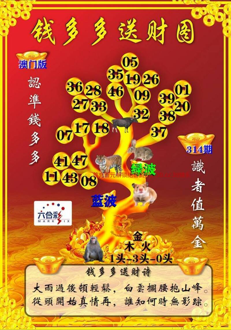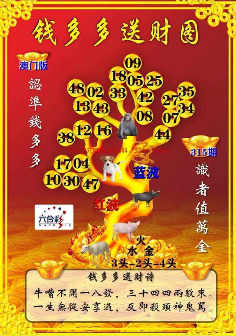 318期【单笔双笔】买码必看| 钱多多【聚宝盆彩报】59914.com |
